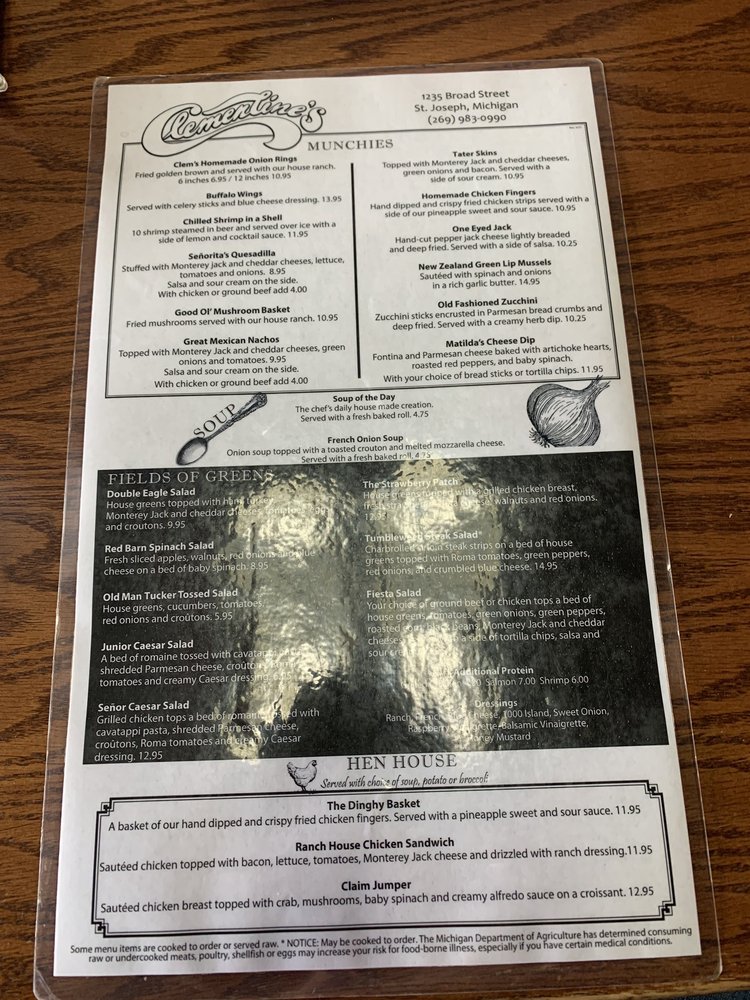 Welcome to Clementines Too, a delightful culinary gem located at 1235 Broad St in Saint Joseph, MI. This charming establishment specializes in a fresh and vibrant menu featuring salads, sandwiches, and seafood, perfect for those seeking a balanced meal in a casual atmosphere.